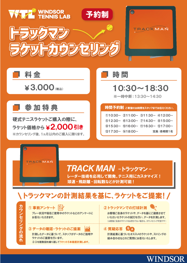 【4月】【5月】開催の「WTLトラックマンラケットカウンセリング」の予約を受付中です。