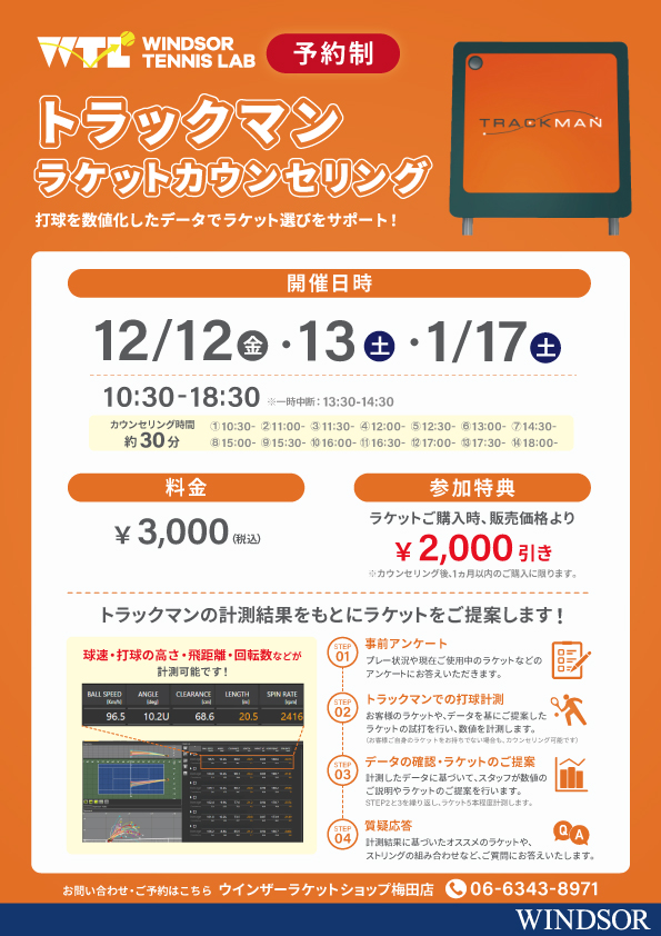 【只今受付中】12・1月開催「WTLトラックマンラケットカウンセリング」