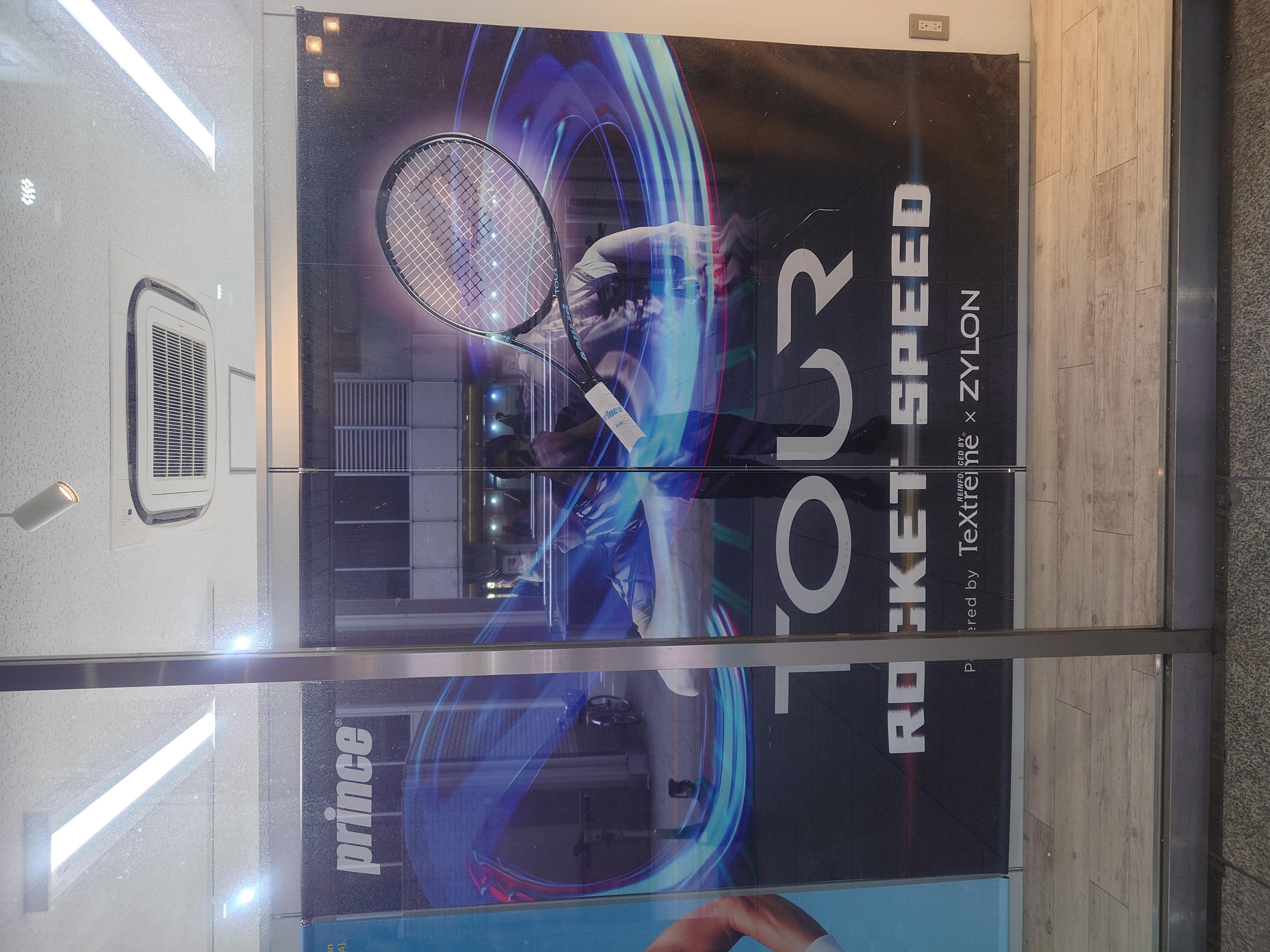 店内のラケットコーナーと試打コーナーの壁紙も新しく