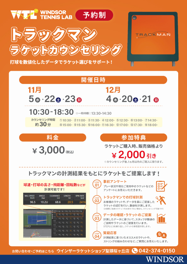 【予約受付中】11月・12月開催「WTLトラックマンラケットカウンセリング」