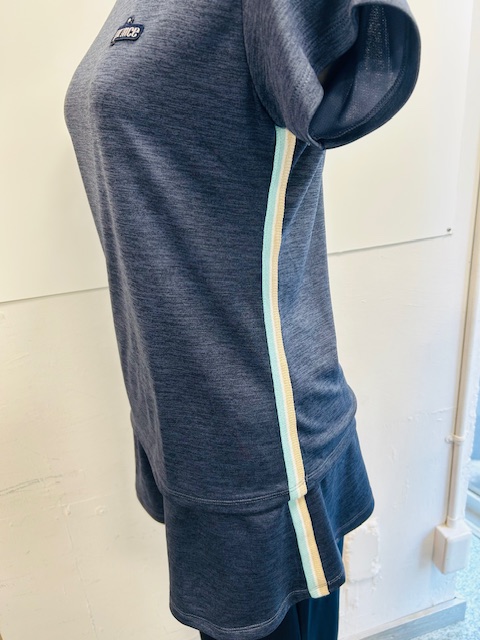 こちらのゲームシャツと、スコートには、サイドにパイルテープがアクセント。いずれも、汗染み防止加工付きです。