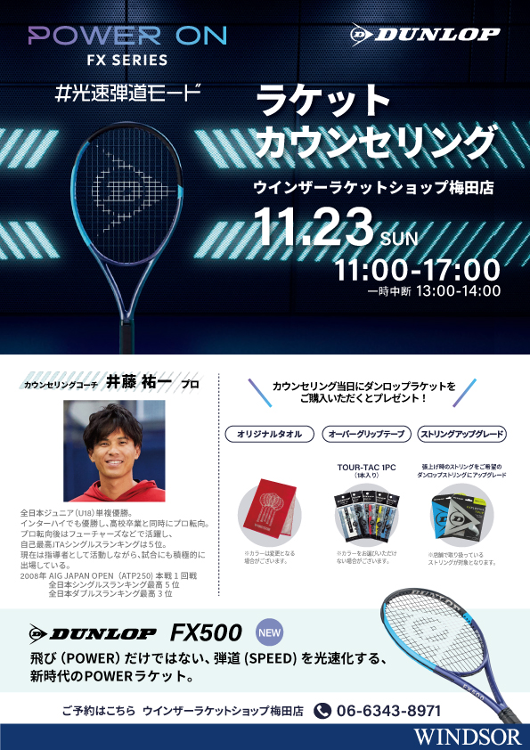 ウインザーラケットショップ梅田店にて井藤祐一プロによる、