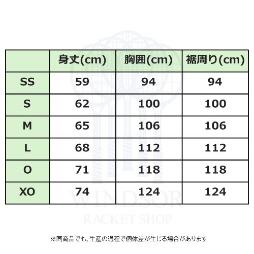 | サイズ | SS/S/M/L/O/XO |