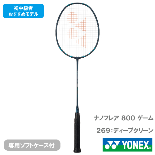 メーカー ヨネックス 品番 NANOFLARE 800 GAME(NF-800G) 平均重量 4U(平均83g) グリップサイズ 4U5/4U6 ラケット全長 674mm (10mmLONGER) 適正テンション 4U(20‐28lbs) 素材(フレーム) カーボン+NANOCELL NEO+高弾性カーボン+Copper 素材(シャフト) カーボン 素材(ジョイント) 内臓T型ジョイント+カーボン 付属品 ソフトケース付(ブラック) カラー ディープグリーン(269) 発売日 2023年11月 ガット張り工賃 ¥1,500(税込) フレームのみ購入時 強チタン ホワイト サービス サービスガット 当店指定のものよりお選び頂けます。