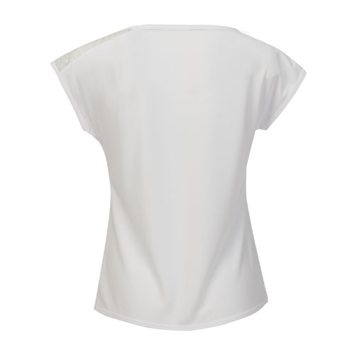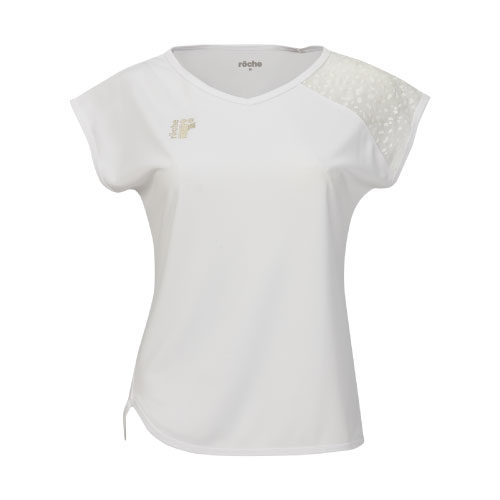 - チュールレースを使ったフレンチスリーブのエレガンスなゲームシャツ。ロゴ刺繍はシルバー糸を使っています。