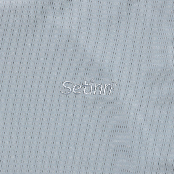 - 表地、裏地ともにメッシュ素材を使用したトレーニングシャツです。裾部分にはドローコードを搭載し様々なシルエットに対応可能。左胸のSETINN刺繍は同色にしています。360°全方向に伸び、動きやすさにこだわりながらもメッシュにすることで通気性も持たせたナイロントリコットメッシュ素材。