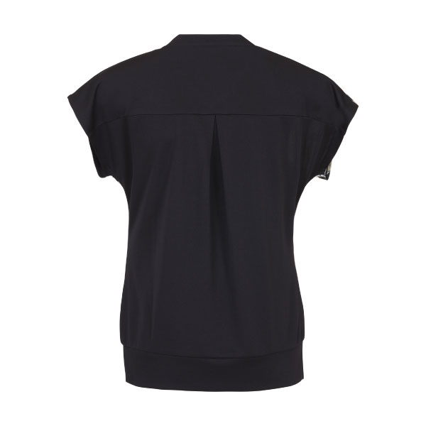 - カラーごとに異なる5種類のグラフィックデザインが魅力のゲームシャツ。フロントはカシュクール風の上品なシルエットで女性らしい雰囲気に。バックは無地でシンプルに。柔らかく伸縮性のある吸水速乾素材を使用。※JTA適応