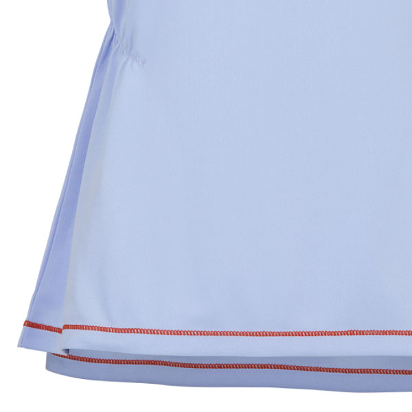 ウエストとバックに絞りを入れることで、立体感のある美しいラインを演出。前後差のある丈が動きにニュアンスを加え、すそには飾りミシンの配色をアクセントに。