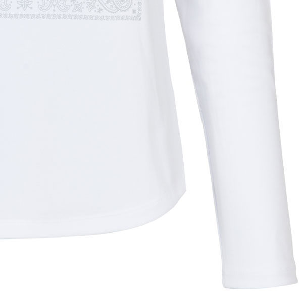 - ペイズリー柄のスカーフを思わせるプリントが印象的なロングTシャツ。