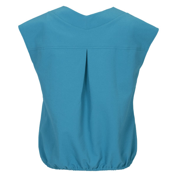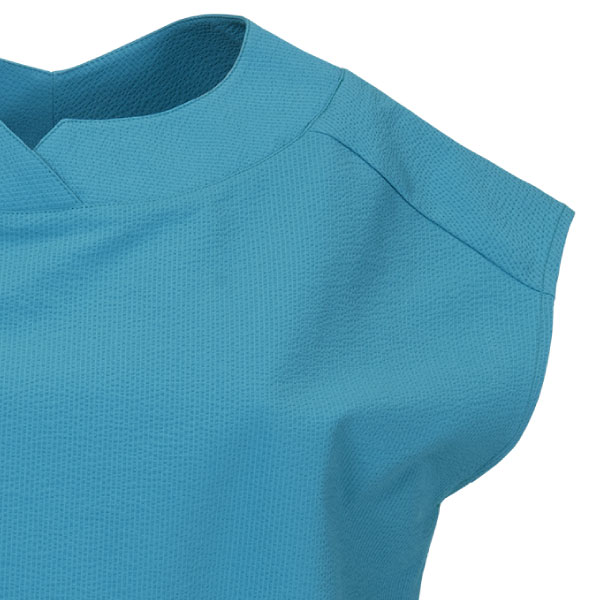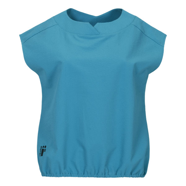 襟のデザインと裾を絞った丸みのあるシルエットが、さりげないかわいらしさを演出。ストレッチ性があり動きやすい素材です。※JTA適応