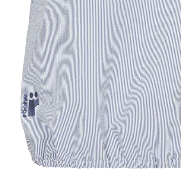 - ピンストライプのシアサッカー素材が、涼しげで上品な印象を与えるゲームシャツ。