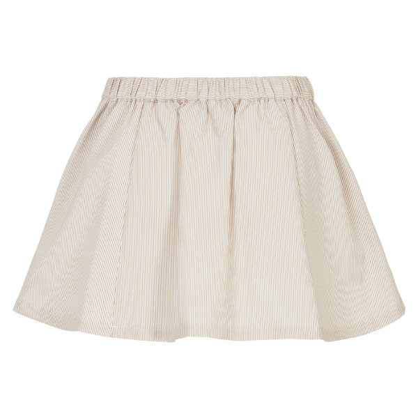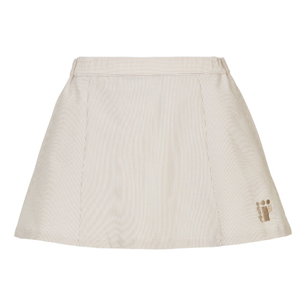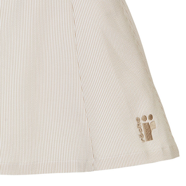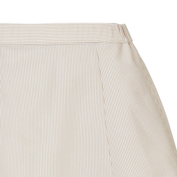 - ピンストライプのシアサッカー素材が、涼しげで上品な印象を与えるスコート。