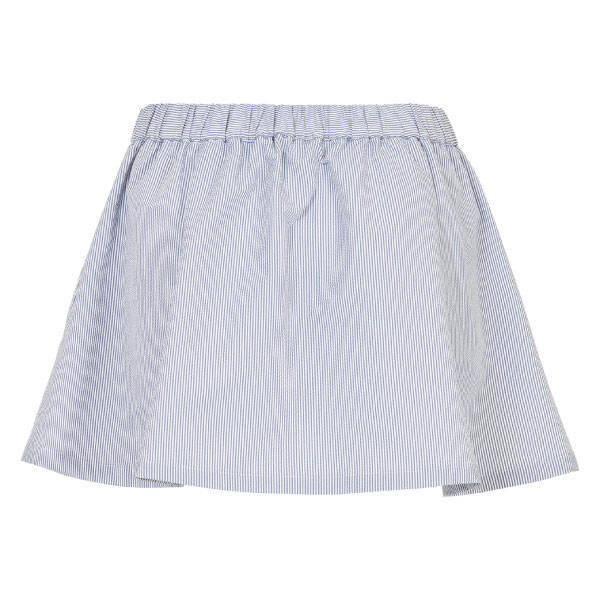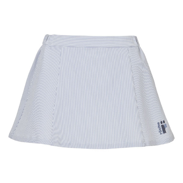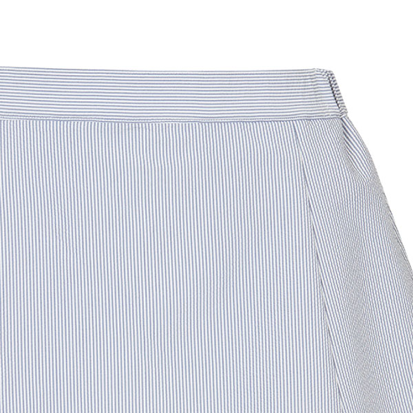 - ピンストライプのシアサッカー素材が、涼しげで上品な印象を与えるスコート。
