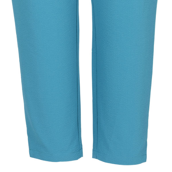 - ピンストライプのシアサッカー素材が、涼しげで上品な印象を与えるロングパンツ。
