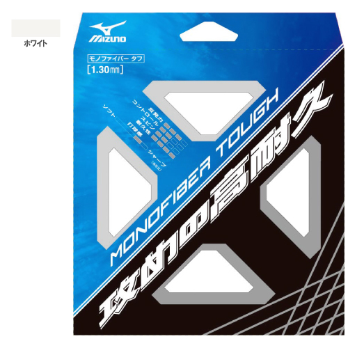 メーカー ミズノ 品名 モノファイバータフ ゲージ 1.30mm タイプ モノフィラメント 素材 高弾性ナイロンモノフィラメント・シリコーンコーティング 長さ 11.5m カラー1 ホワイト(01) カラー2 ブラック(09) カラー3 ブルー(27) カラー4 イエロー(45) カラー5 レッド(62) 発売日 2014年10月
