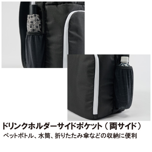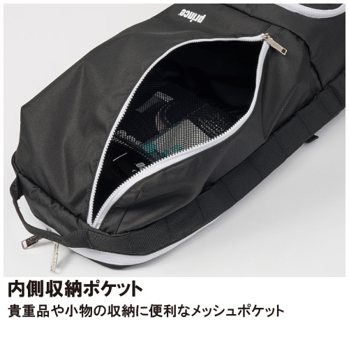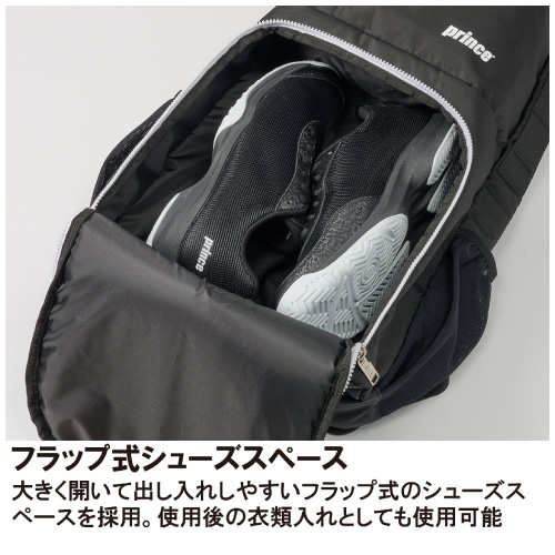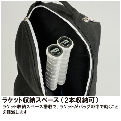 | 機能 | ラケット収納スペース フラップ式シューズスペース 内側収納ポケット ドリンクホルダーサイドポケット アクセサリーポケット 背面メッシュパッド チェストベルト ギアループ |