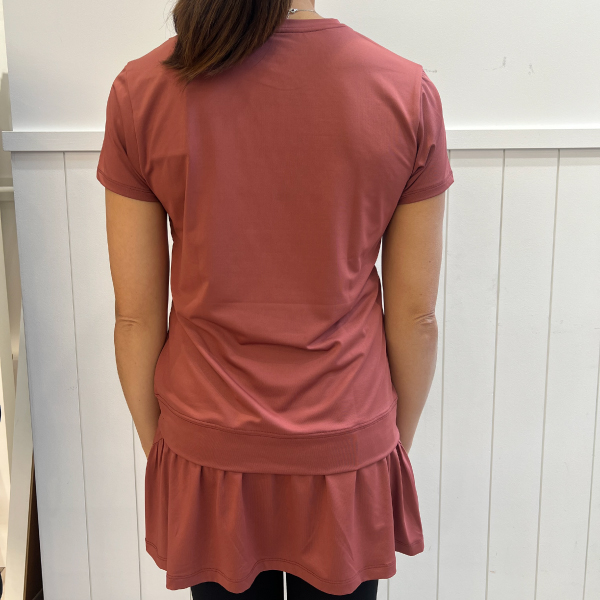 背面をギャザーフレアで切り替えた、前後でシルエットの違いのあるデザインスコート。 吸水速乾とUVカットの機能を持ちながら、とろみのある抜群の伸縮性でしなやかな着心地を実現する定番のストレッチ天竺素材を使用。両脇ポケット、ウエスト紐調整有り。