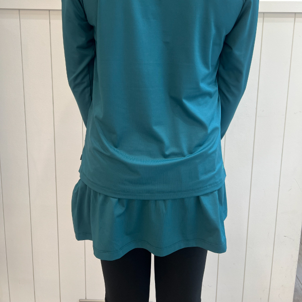 背面をギャザーフレアで切り替えた、前後でシルエットの違いのあるデザインスコート。 吸水速乾とUVカットの機能を持ちながら、とろみのある抜群の伸縮性でしなやかな着心地を実現する定番のストレッチ天竺素材を使用。両脇ポケット、ウエスト紐調整有り。