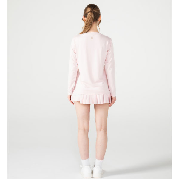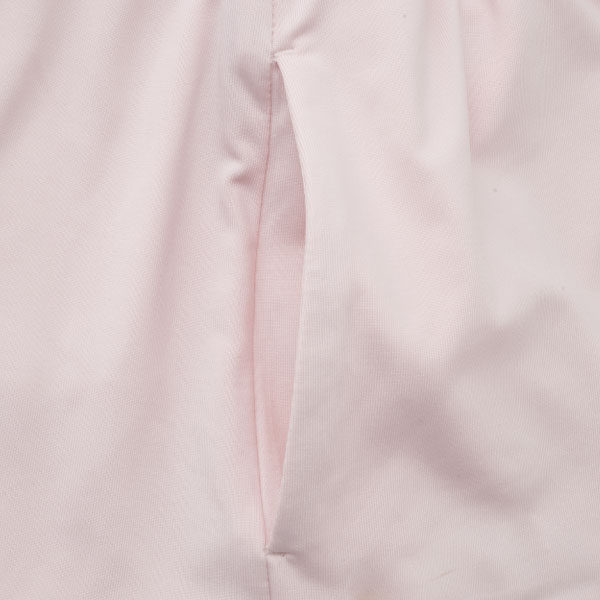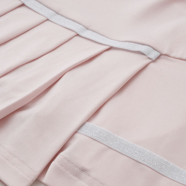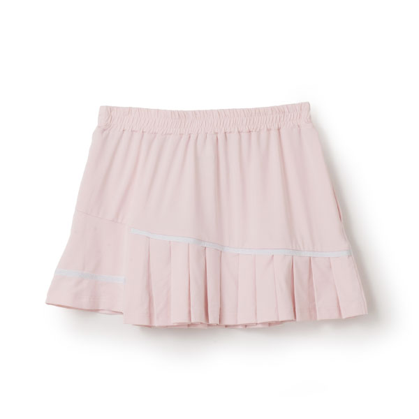 - アシンメトリーに流れる切替とラメテープがアクセントのウィンザー別注デザイン。丈差とプリーツのバランスが個性的なスコート。吸水速乾とUVカットの機能を持ちながら抜群の伸縮性でしなやかな着心地を実現するストレッチ天竺素材を使用。両脇ポケット、ウエスト紐調整有り。
