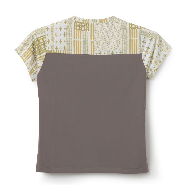 - 顔周りにグラフィックを施し華やかさを演出し、裾のスリットデザインでメリハリを出したTシャツ。