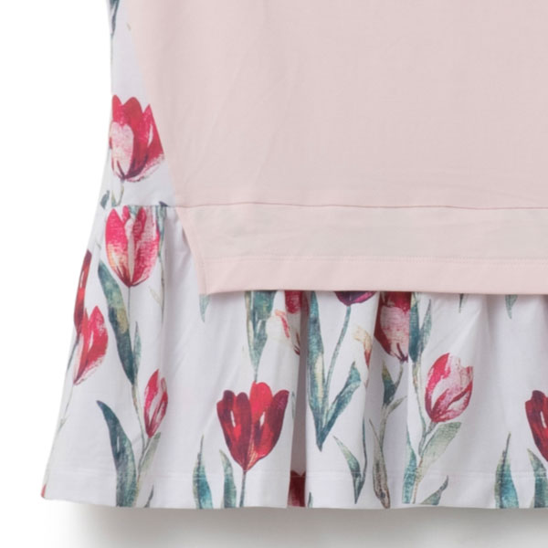 - 裾のフリル切替にグラフィックを施し存在感のあるシルエットのTシャツ。