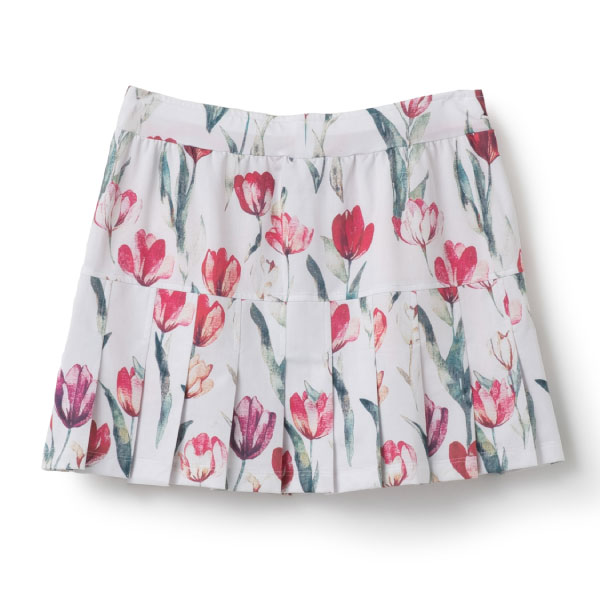 - 定番のプリーツスコート。ヒップラインから下がプリーツになることで、広がりすぎない上品な動きのあるシルエット。