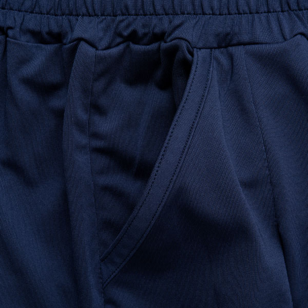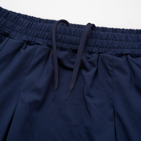 しなやかな着心地を実現する定番のストレッチ天竺素材を使用。両脇ポケット、ウエスト紐調整有り。