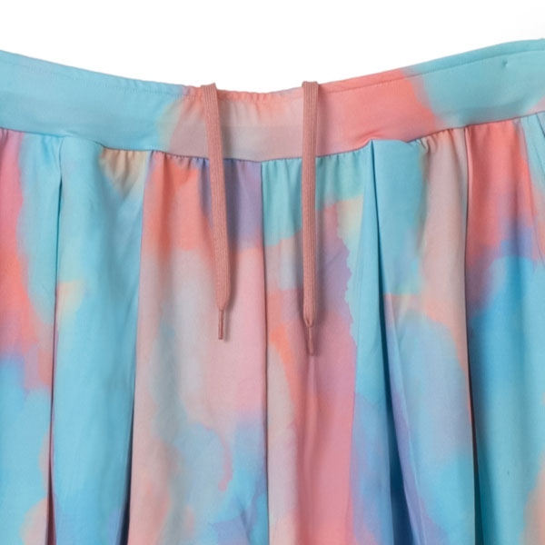 - 大きめのタックで存在感のあるフレアシルエットの総柄キュロットショーツ。