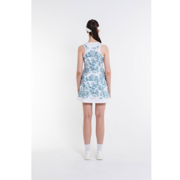 - グラフィックを大胆に施したノースリーブのフレアワンピース。