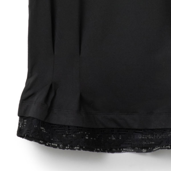 - 透け感のある裾レースレイヤーで上品で爽やかな印象のデザインTシャツ。存在感のあるタックデザイン。