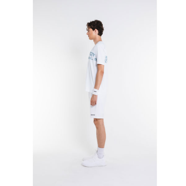 - シーズングラフィックをシンプルなライン切替に施したTシャツ。吸水速乾とUVカットの機能を持ちながら、