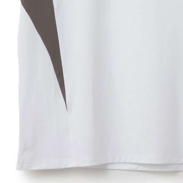 - 構築的な切替がクールな印象のバイカラーデザイン。吸水速乾とUVカットの機能を持ちながら、