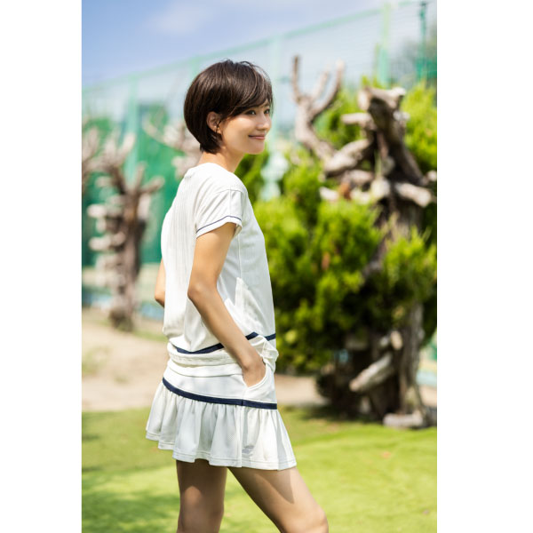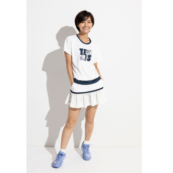 - ニットライク素材 & クラシックデザイン採用スコート。