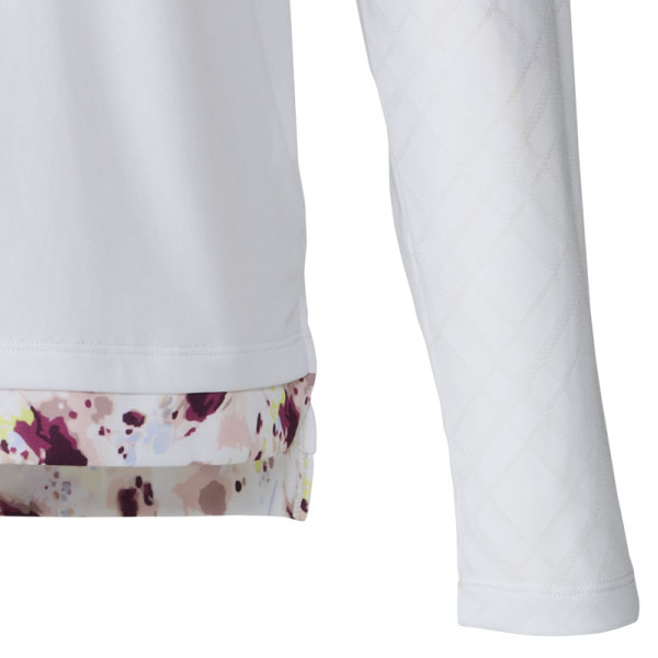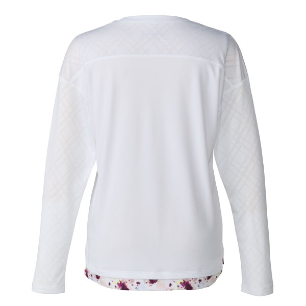 - デザインメッシュ&ルーズフィットシルエット採用ロングスリーブトップ。