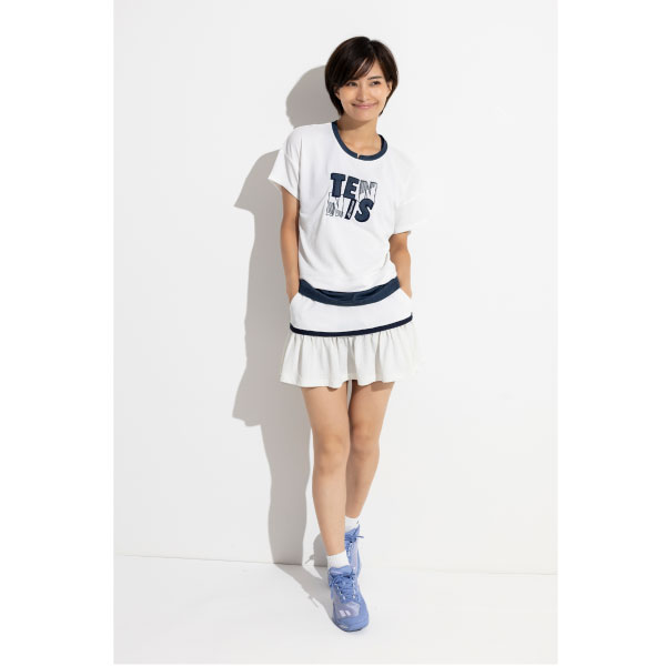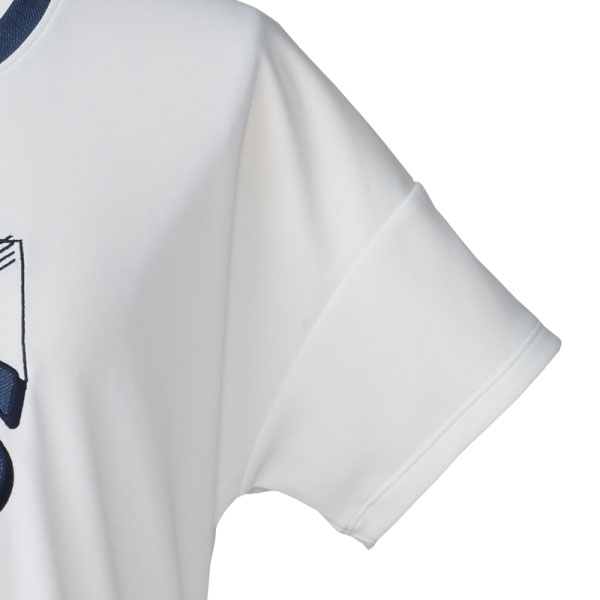 - グラフィックロゴをアップリケで表現したプラクティストップ。ルーズフィット採用モデル。