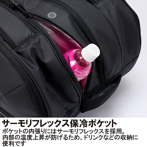 | 機能 | サーモリフレックスラケットスペース、シューズスペース、PCポケット、サーモリフレックス保冷ポケット、アクセサリーポケット、フリースポケット、パッド入りグラブハンドル |