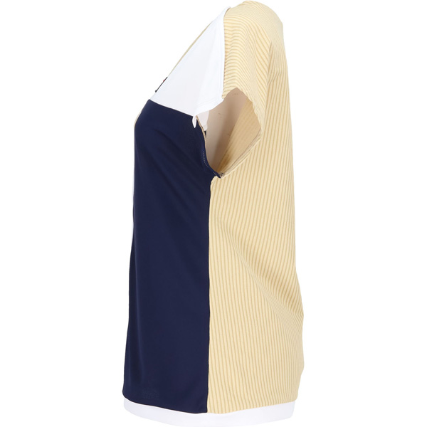 - ボートネックのゲームシャツはリズム感ある切り替えで遊び心がポイントです。同柄のスコートや無地のスコートなどアクティブに着こなしてください