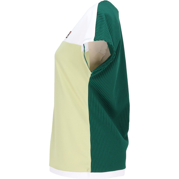 - ボートネックのゲームシャツはリズム感ある切り替えで遊び心がポイントです。同柄のスコートや無地のスコートなどアクティブに着こなしてください