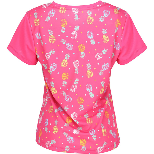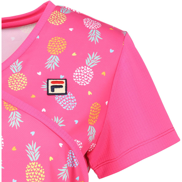 メーカー フィラ 品番 CZ6SGW008-PK0 カラー ピンク(PK0) サイズ S/M/L/XL 対象性別 レディース 素材 汗染み防止ワッフル (ポリエステル100%)/パイナップル総柄プリントバックホールメッシュ(ポリエステル100%) 発売日 2026年2月