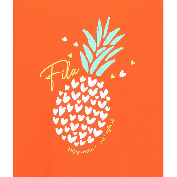 - リゾート地でもテニスを楽しみたい想いを込めたグラフィックTシャツは、パイナップルをモチーフにしました。パイナップル総柄プリントとのコーディネートがおすすめです。