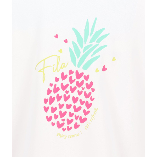- リゾート地でもテニスを楽しみたい想いを込めたグラフィックTシャツは、パイナップルをモチーフにしました。パイナップル総柄プリントとのコーディネートがおすすめです。