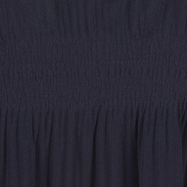 - ウエストにシャーリングプリーツを施したデザインです。ゴムではないので汗をかいても快適です。後身頃を少し長くし、さりげなくウエストをマークした女性らしいデザインです。