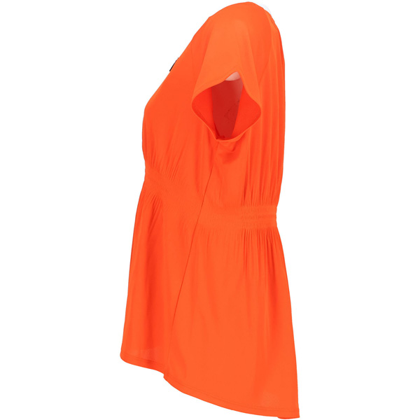 - ウエストにシャーリングプリーツを施したデザインです。ゴムではないので汗をかいても快適です。後身頃を少し長くし、さりげなくウエストをマークした女性らしいデザインです。