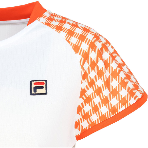 メーカー フィラ 品番 CZ6SGW014-OG0 カラー オレンジ(OG0) サイズ S/M/L/XL 対象性別 レディース 素材 汗染み防止ワッフル(ポリエステル100%)/ギンガムチェック総柄プリントバックホールメッシュ(ポリエステル100%) 発売日 2026年2月
