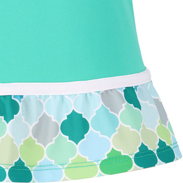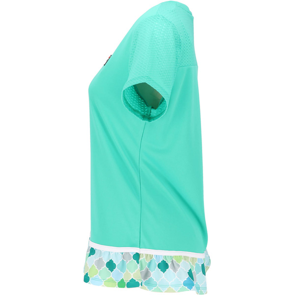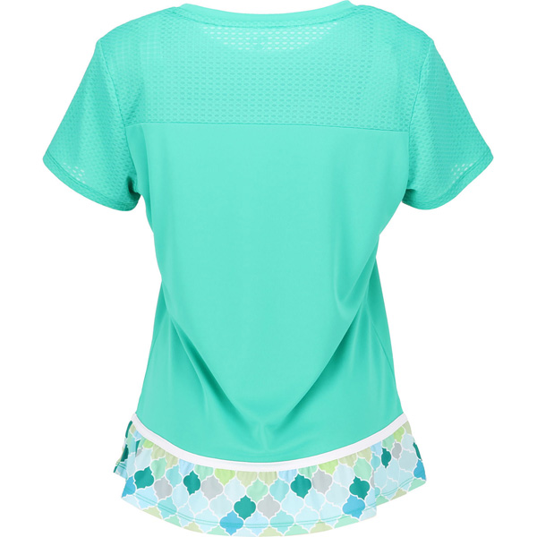 - ボディは着こなしやすい無地、裾は涼し気なプリントを可愛く配しています。袖と背中のヨークがメッシュ素材で快適です。同素材のスコートとのコーディネートがおすすめです。