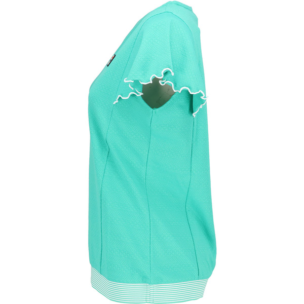 - 動きやすいフレアー袖が腕の動きをスムーズにしてくれます。フェミニンで機能も満たす優秀アイテムです。裾のボーダーゴムがスポーティなアクセントです