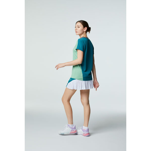 背面に発汗時の肌離れに優れた素材を使用したゲームシャツ。