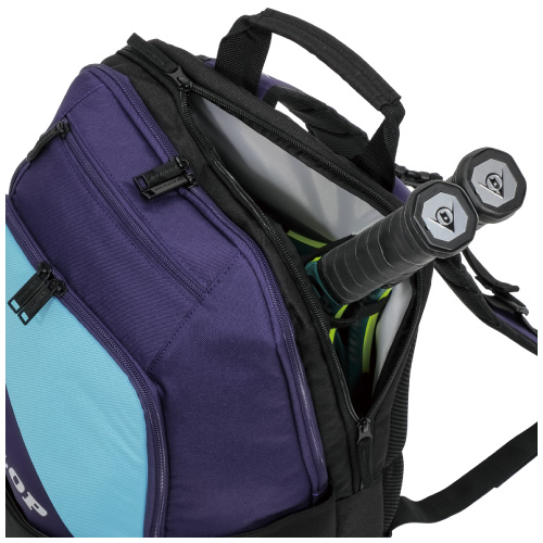 メーカー ダンロップ 品名 バッグパック(テニスラケット2本収納可) 品番 DTC-2682 カラー バイオレットネオンブルー サイズ 34×23×50 cm