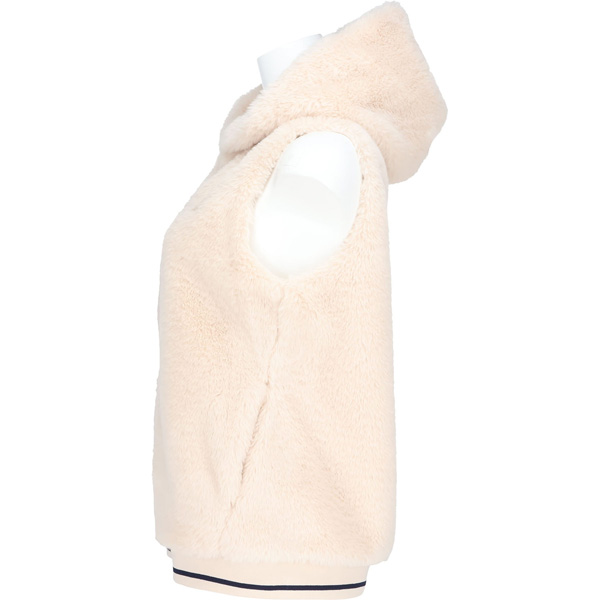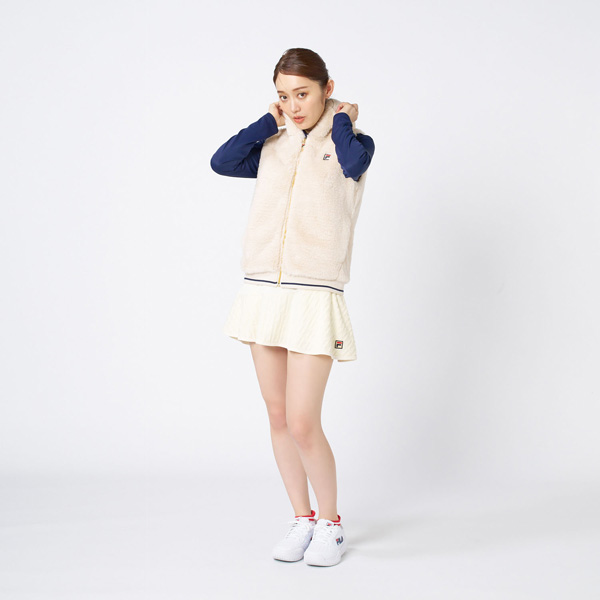 - メタリオンのゴールドファスナーがアクセントのフード付きベスト。首回りが暖かでちょっと肌寒い時にぜひ着こなしてください。スコートとのセットアップも可能です。
