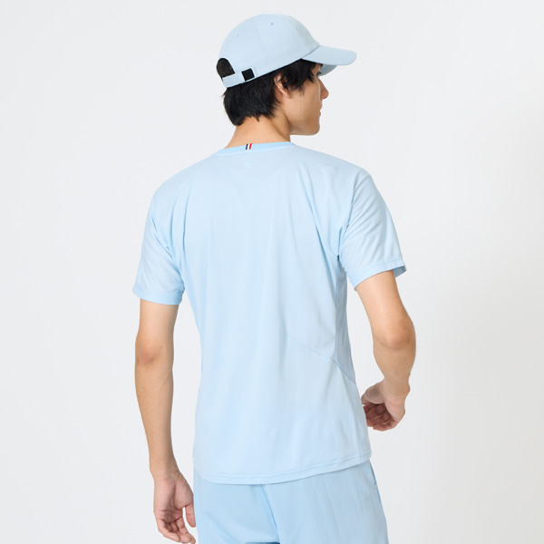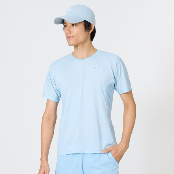 メーカー ルコックスポルティフ 品番 LN6SHT10M-BL00 カラー ブルー(BL00) サイズ M/L/O 対象性別 メンズ 素材 デニムライクニット ,バックメッシュ(ポリエステル100%) 機能 吸汗速乾/ストレッチ/UPF15/消臭/JTA公認 発売日 2026年2月